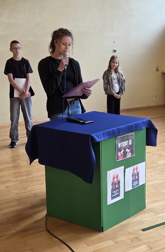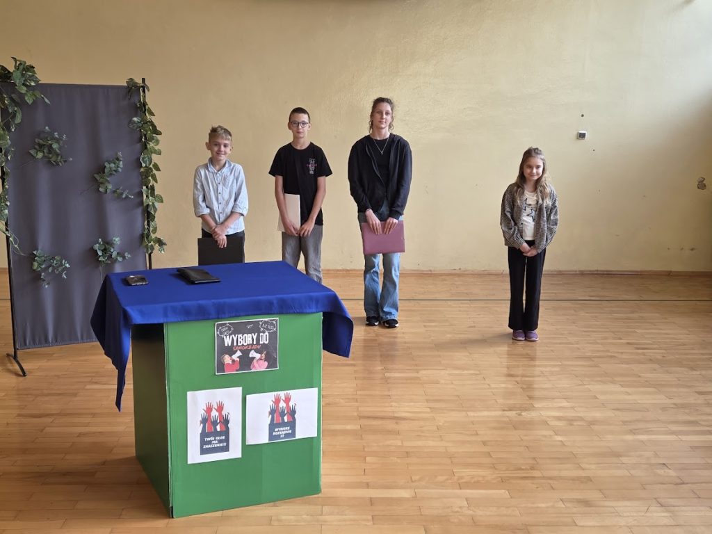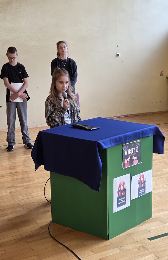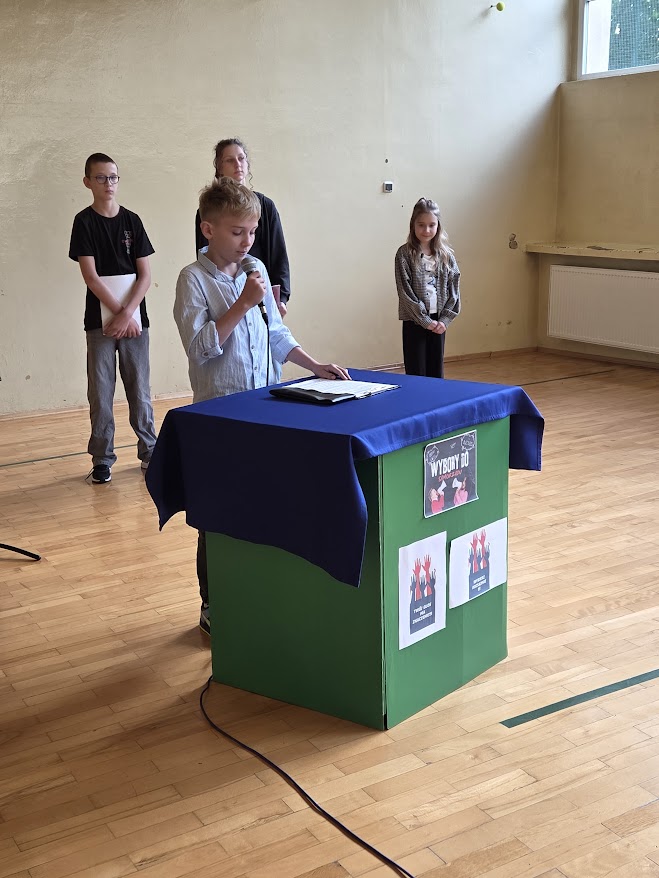 Kulminacyjnym momentem kampanii była debata, która odbyła się 27.09.2025 w sali gimnastycznej. Przystąpili do niej Marysia z kl.5., Ania z kl. 8., Franek z kl. 7. i Jakub z kl.7. Kandydaci stanęli przed całą społecznością szkolną, by zaprezentować swoje programy. Każdy z nich miał chwilę z mikrofonem, aby przekonać publiczność, że to właśnie jego wizja zasługuje na realizację. Po wystąpieniach nastąpiła część pytań – uczniowie mogli skonfrontować swoich kontrkandydatów, sprawdzając, jak poradzą sobie z odpowiedziami „na żywo”. Po takiej prezentacji uczniowie klas 1–8 mieli już jasność, na kogo chcą oddać swój głos. Wróciwszy do sal lekcyjnych, na specjalnie przygotowanych kartach stawiali „X” przy nazwisku wybranego kandydata. Po wyrównanej walce ogłoszono wyniki.