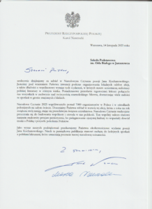 Listopadowe aktualności biblioteczne zamykamy wyjątkową informacją. Nasza szkoła otrzymała podziękowanie przesłane z Kancelarii Prezydenta RP za udział w ogólnopolskiej akcji Narodowe Czytanie. Wraz z listem dotarła do nas także książka pamiątkowa w limitowanej edycji, która stanowi cenną pamiątkę tego wydarzenia, podpisana przez Parę Prezydencką. To wyróżnienie jest dla nas powodem do dumy i potwierdzeniem, że wspólne czytanie ma szczególną wartość w życiu naszej szkolnej społeczności.