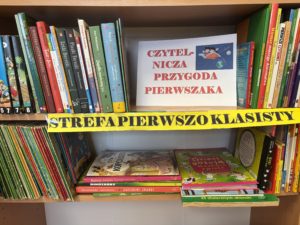 W naszej bibliotece pojawiła się wyjątkowa półka z książkami stworzona specjalnie z myślą o uczniach klas pierwszych. Nadaliśmy jej nazwę „Czytelnicza Przygoda Pierwszaków”, bo każda książeczka to zaproszenie do świata wyobraźni i nauki czytania przez zabawę.