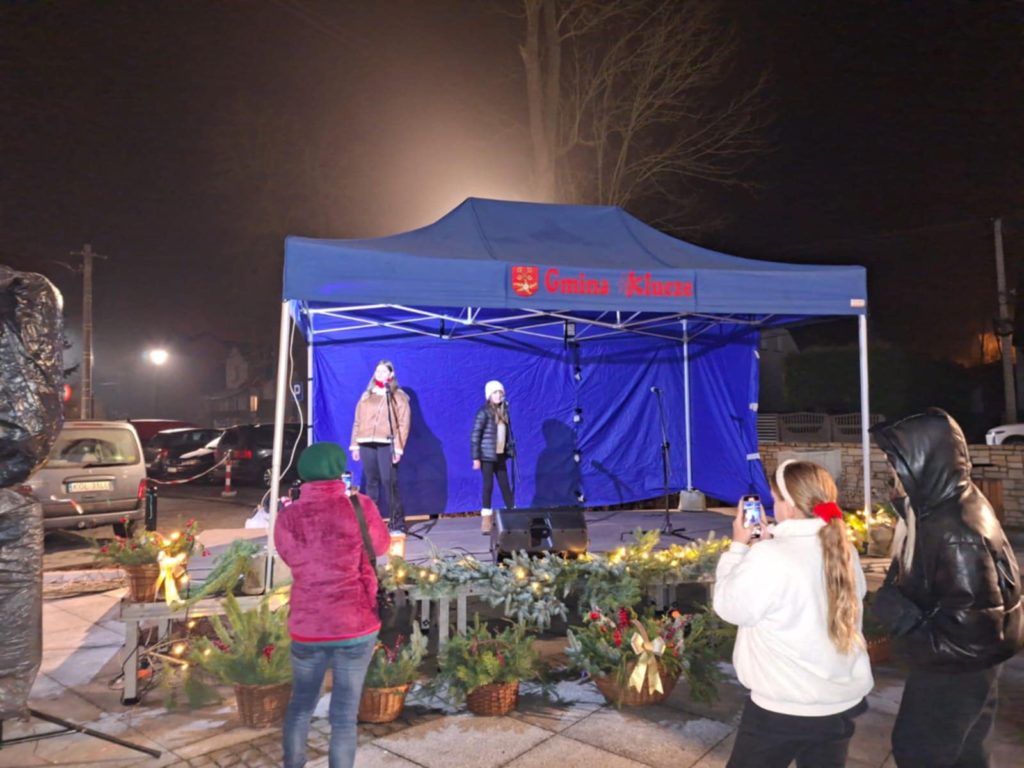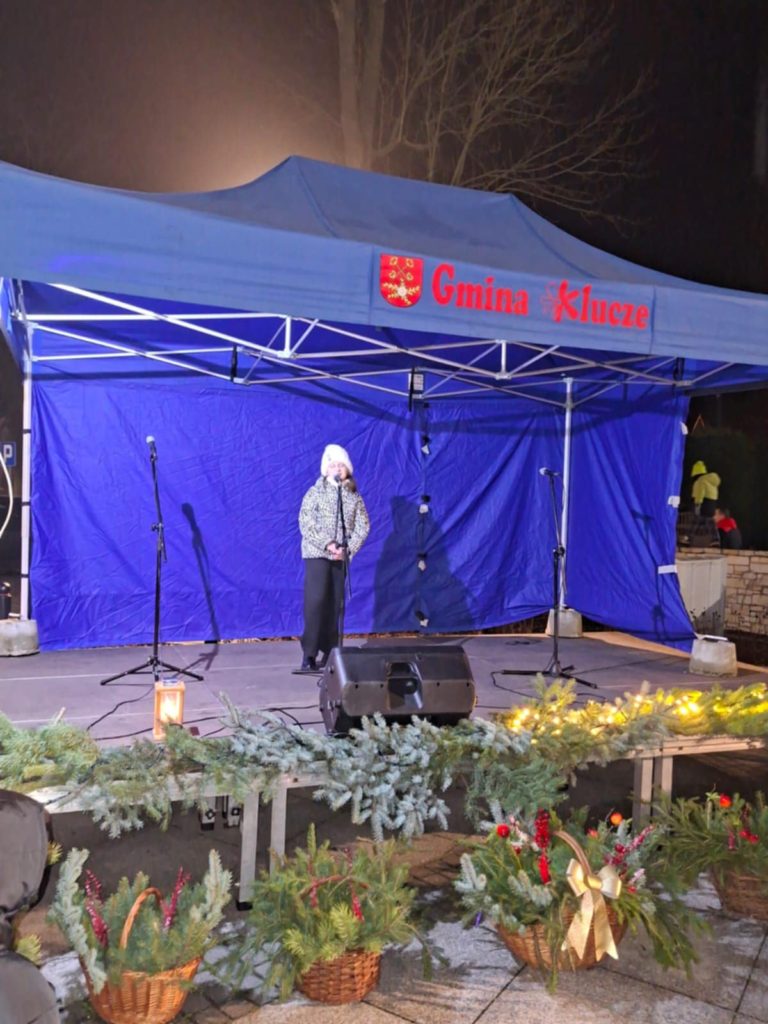 Podczas Jarmarku Bożonarodzeniowego 12.12.2025 w Kluczach naszą szkołę godnie reprezentowały uczennice klasy V i VII. Lilianna Majcherkiewicz wykonała “Pastorałkę od serca do ucha” oraz “Gorę gwiazda”, natomiast Antonina Gregorczyk zaśpiewała “Mario, czy Ty wiesz?”. Młode artystki zaprezentowały się, wykonując piękne piosenki świąteczne, które wprowadziły uczestników jarmarku w radosny, bożonarodzeniowy nastrój. Występ uczniów spotkał się z ciepłym przyjęciem publiczności i był doskonałą okazją do zaprezentowania talentów muzycznych oraz zaangażowania naszej szkolnej społeczności. Dziękujemy uczniom za wspaniały występ oraz godne reprezentowanie szkoły.