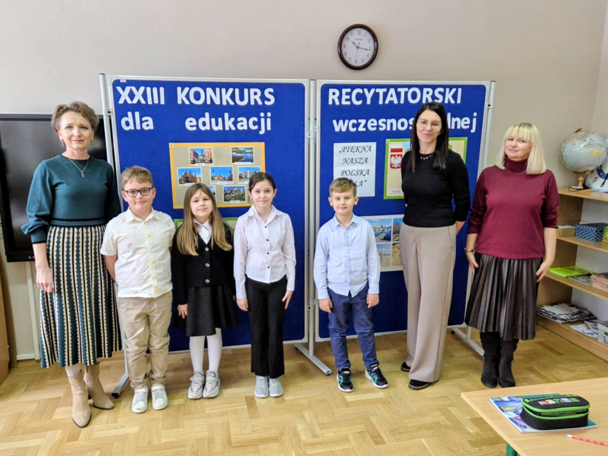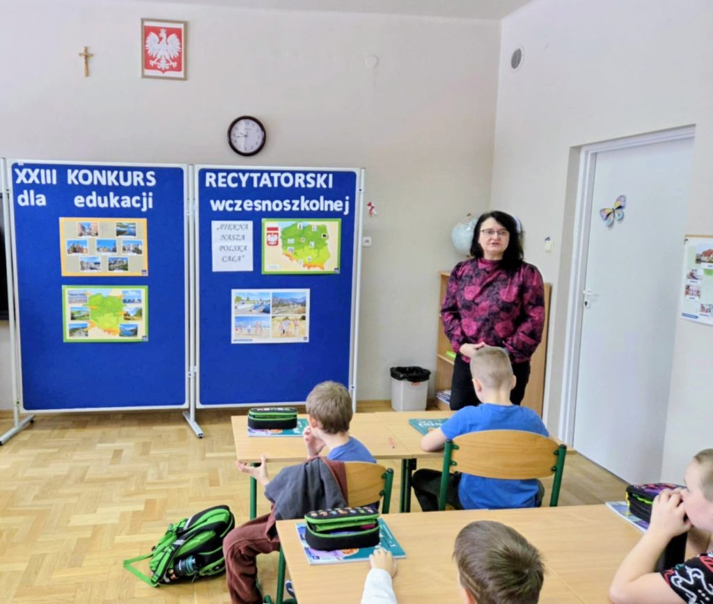 Dnia 01.12.2025 r. odbył się szkolny etap powiatowego konkursu recytatorskiego dla  edukacji wczesnoszkolnej pod hasłem „Piękna nasza Polska cała”. Uczestników przywitała Pani Dyrektor Violetta Auguścik, która życzyła wszystkim powodzenia i samych pozytywnych wrażeń.