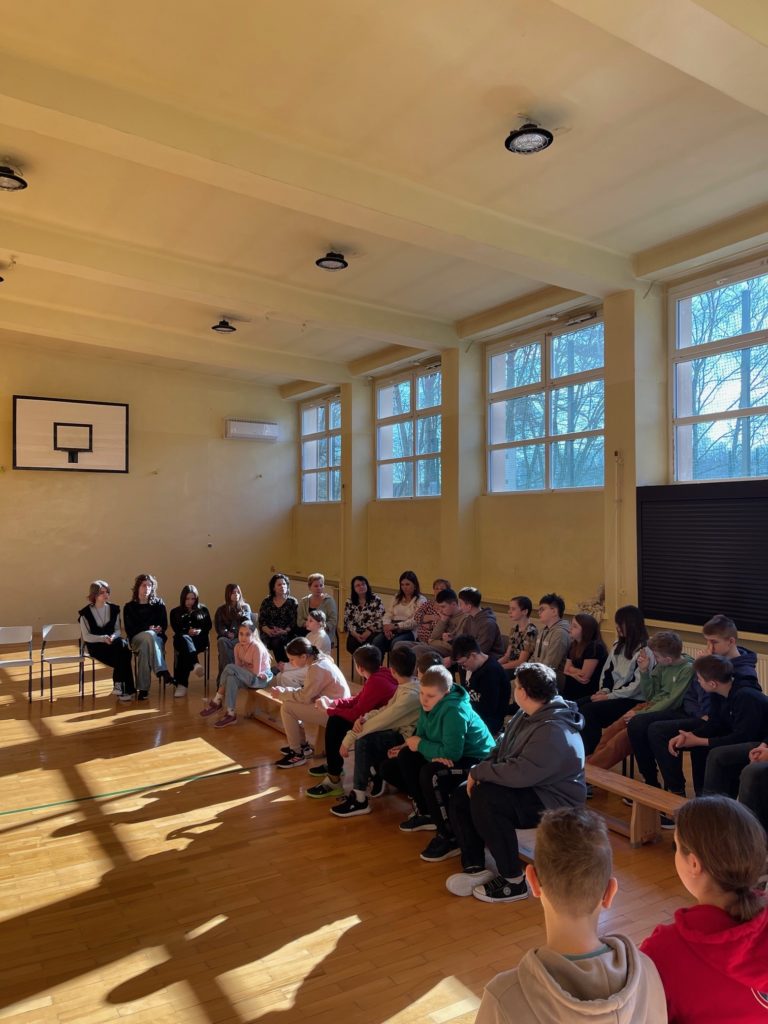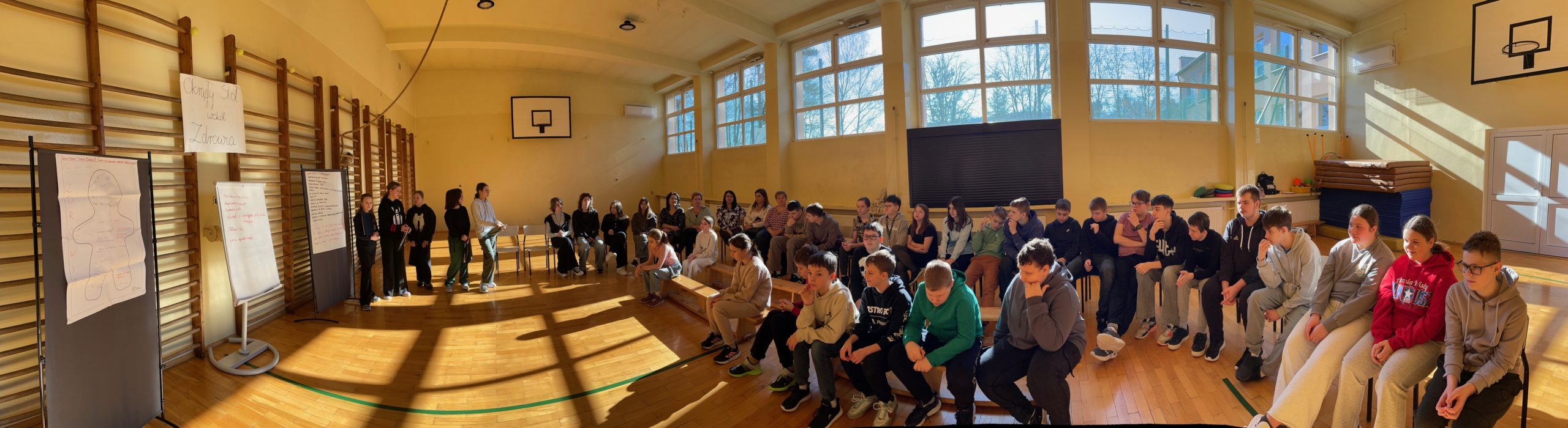26.02.2026r. w sali gimnastycznej naszej szkoły odbyła się debata „Okrągły Stół wokół Zdrowia”. Wydarzenie stanowi element projektu „Zdrowie z Klasą” realizowanego przez Fundację Szkoła z Klasą. Spotkanie zgromadziło przedstawicieli społeczności szkolnej, aby wspólnie wypracować standardy dbające o dobrostan uczniów i pracowników.