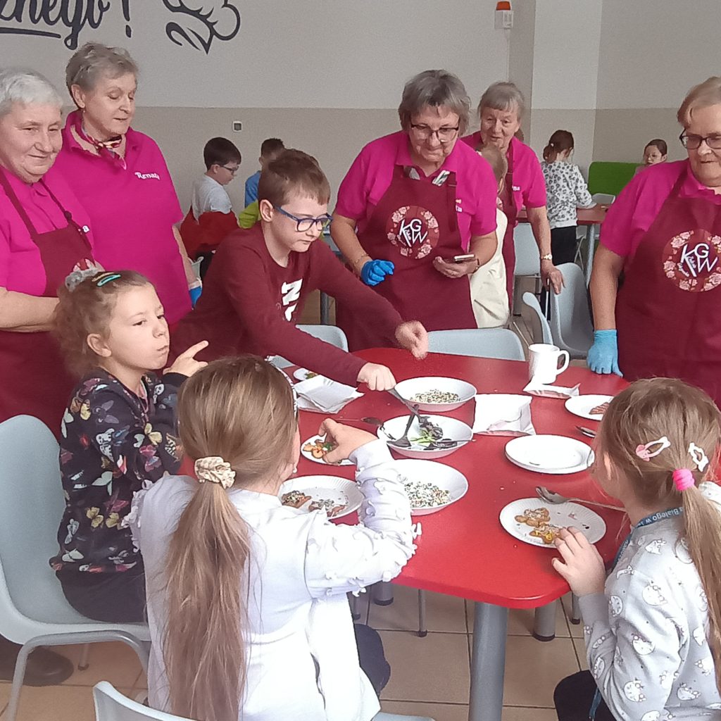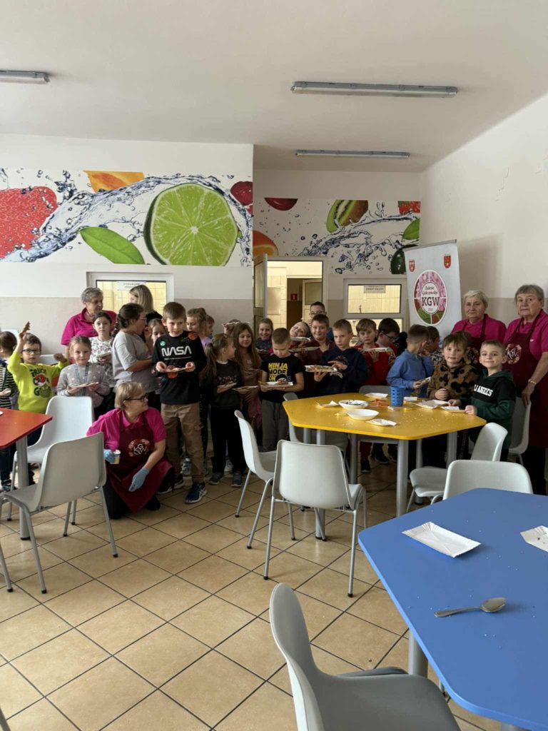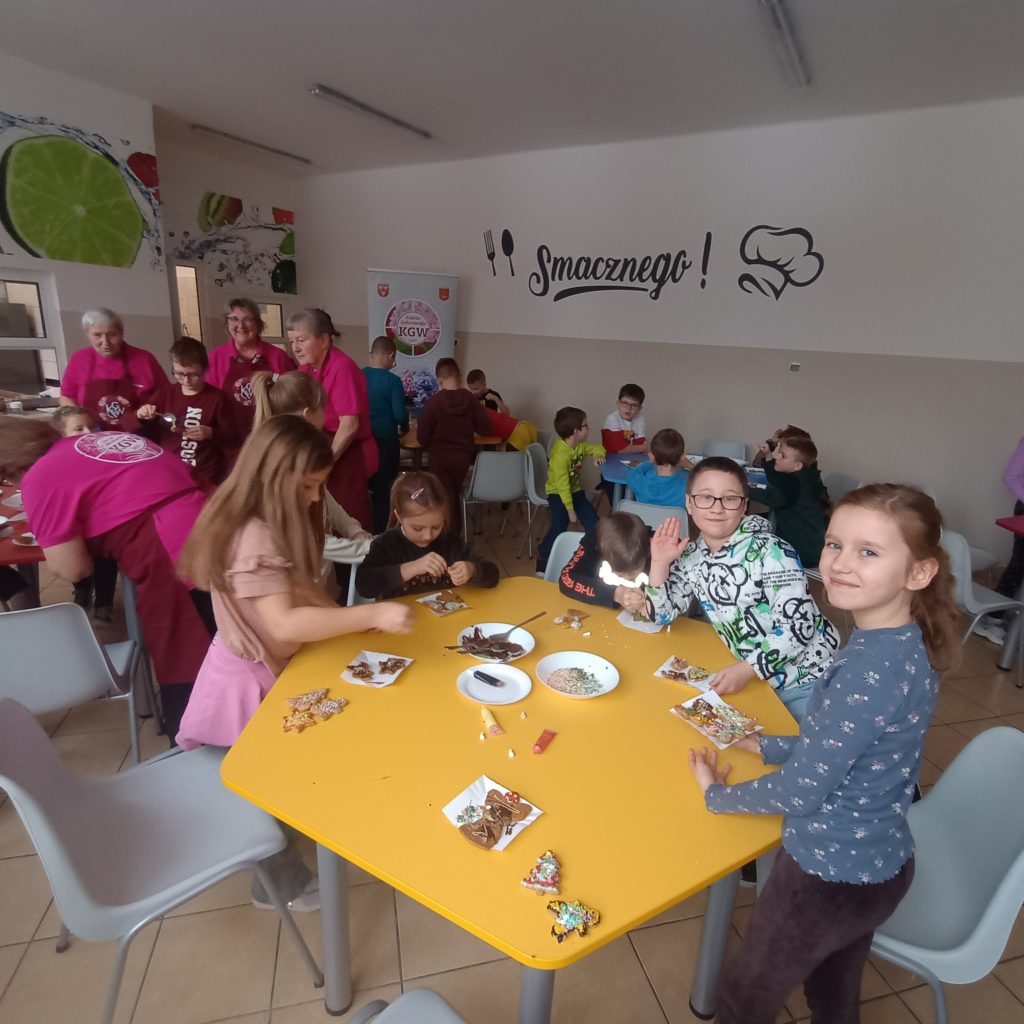 Pod okiem Pań z Koła Gospodyń Wiejskich z Zalesia Golczowskiego, dzieci miały okazję nie tylko poznać tajniki przygotowywania świątecznych pierniczków, ale także samodzielnie  dekorować pachnące wypieki. W szkolnej stołówce unosił się zapach korzennych przypraw, a na twarzach najmłodszych gościł uśmiech i ogromne zaangażowanie.