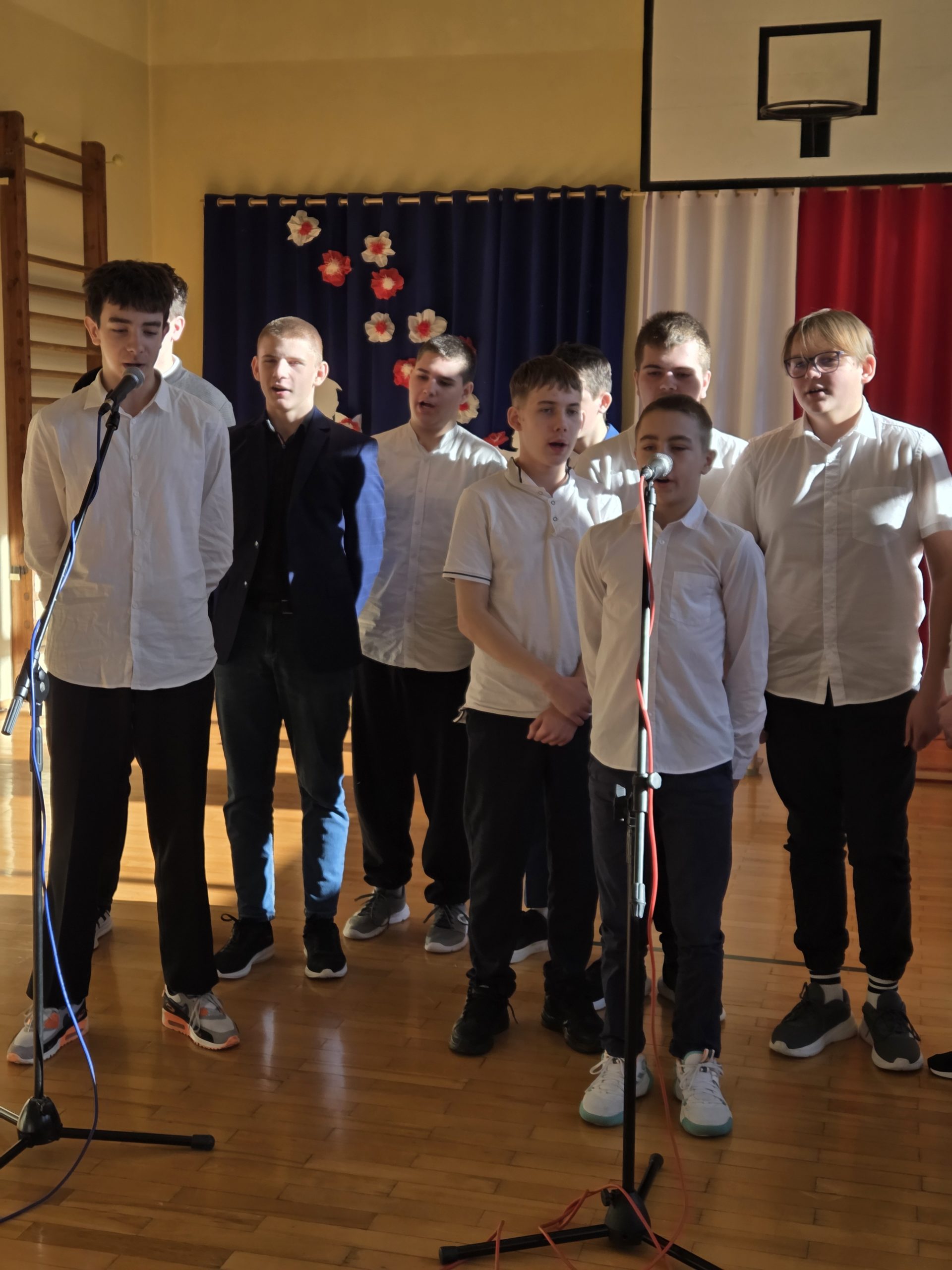Każda klasa pod opieką wychowawców przygotowała jedną pieśń, koordynował pan Ryszard Smaruj.
