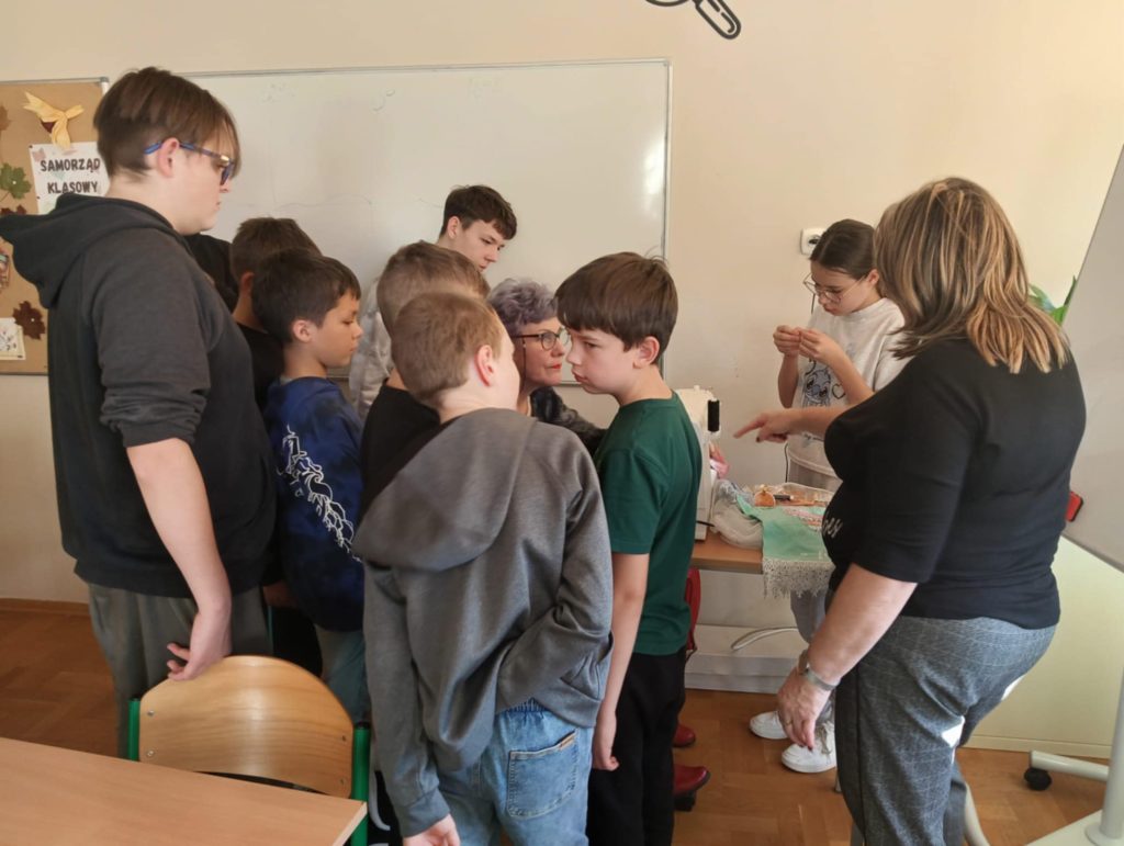 Podczas listopadowych zajęć w Pracowni “Pi” odbyły się wyjątkowe warsztaty ekologiczne pod hasłem „Upcycling ubrań”, realizowane w ramach projektu „Ekobohaterowie z SP Jaroszowiec budują przyszłość z CEMEX-em”. Na naszych uczniów czekała inspirująca lekcja kreatywności i odpowiedzialności za środowisko. Swoje umiejętności krawieckie zaprezentowały Panie z Koła Gospodyń Wiejskich w Bogucinie Dużym, które wprowadziły uczestników w świat przeróbek, napraw oraz twórczego nadawania odzieży drugiego życia. Uczniowie przygotowali własne projekty (m.in. projekt otulaczy na książki, materiałowe torby i upcyclingowe rękawiczki) i z dużym zaangażowaniem wcielali je w życie, odkrywając, że moda może być jednocześnie stylowa i ekologiczna. Spotkanie stało się nie tylko okazją do nauki, ale także pięknym przykładem współpracy międzypokoleniowej. Wspólna praca uczniów i Pań z KGW pozwoliła stworzyć twórczą, domową atmosferę i zrealizować atrakcyjne, pełne pasji warsztaty. Dziękujemy wszystkim uczestnikom za zaangażowanie oraz pozytywną energię!
