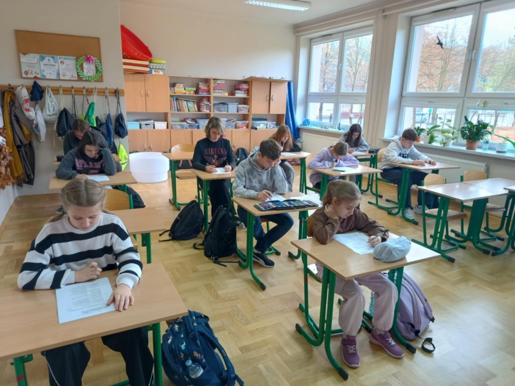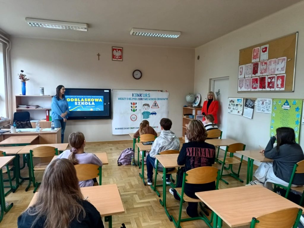 Uczestnicy, podzieleni na dwie kategorie wiekowe, przez 45 minut zmagali się z testami obejmującymi szeroki zakres wiedzy – od przepisów ruchu drogowego i znajomości znaków, po zasady udzielania pierwszej pomocy. Poziom wiedzy był wysoki, co świadczy o tym, że uczniowie solidnie przygotowali się do finału, a cała akcja odblaskowa odniosła sukces.