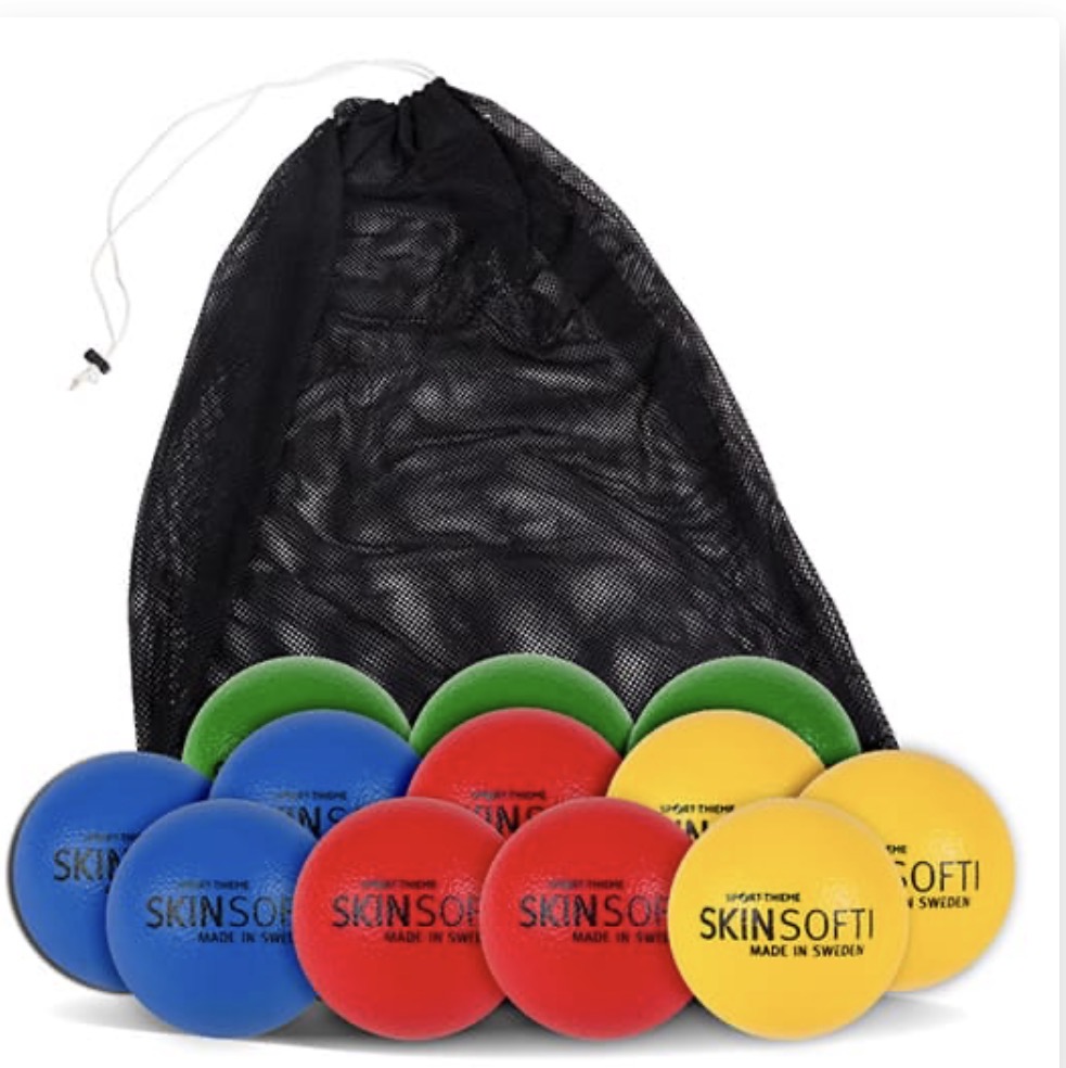 • Zestaw 12 piłek Skin-Softi – lekkich, bezpiecznych i idealnych do różnorodnych gier oraz ćwiczeń ruchowych.