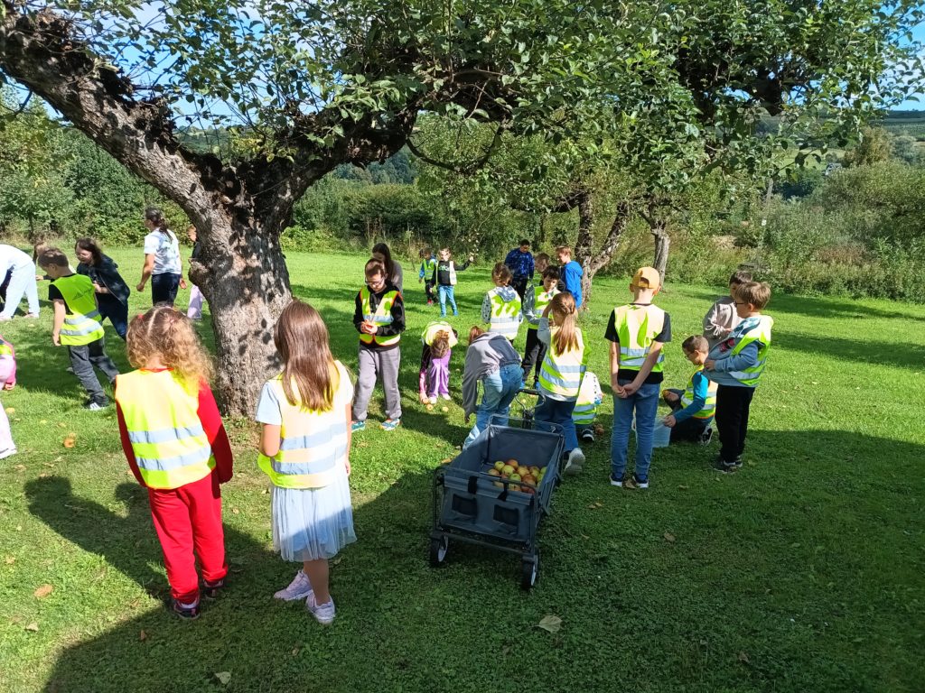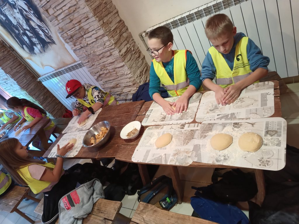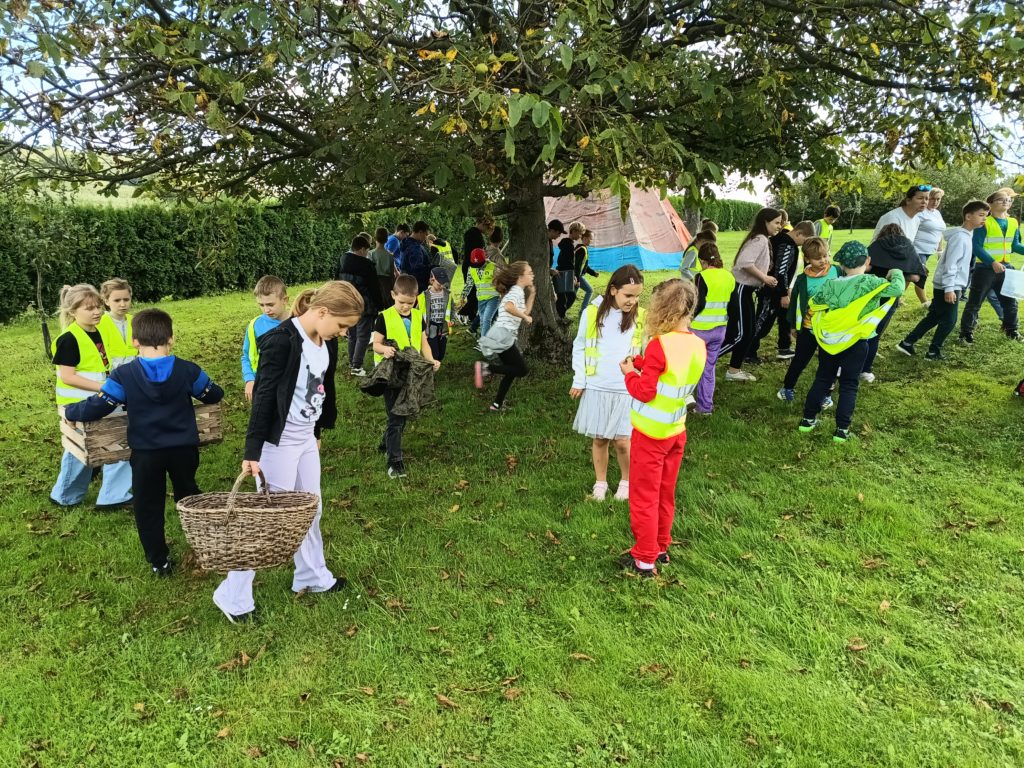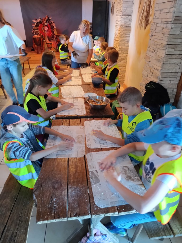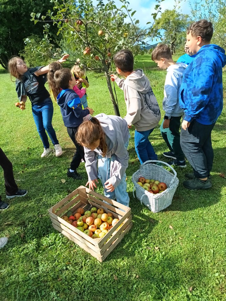 Uczniowie wzięli udział w grze terenowej. Dowiedzieli się, co to znaczy żyć ekologicznie, jakie informacje zawierają etykiety na opakowaniach produktów spożywczych, następnie własnoręcznie zbierali owoce i upiekli bułeczki z orzechami i jabłkami. Dzięki warsztatom dzieci miały możliwość bezpośredniego zapoznania się z tradycyjnym gospodarstwem sadowniczym, ze starymi odmianami jabłoni charakterystycznymi dla Beskidu Wyspowego.