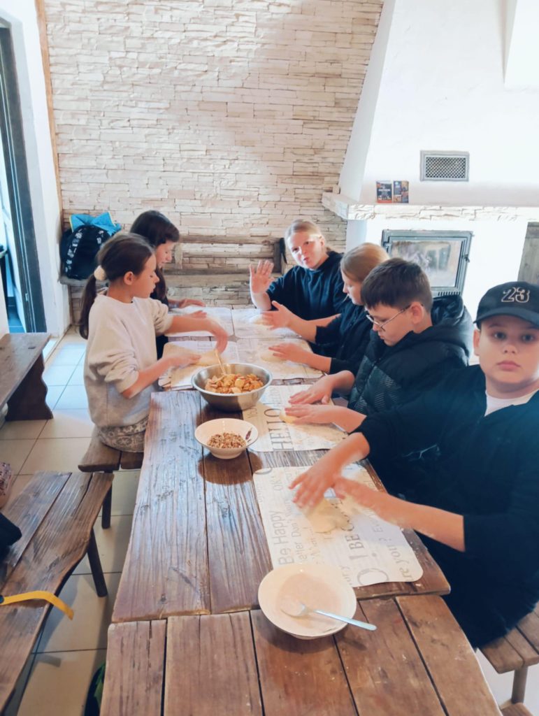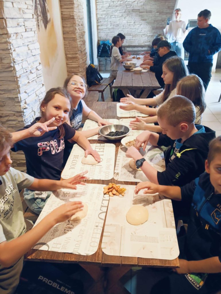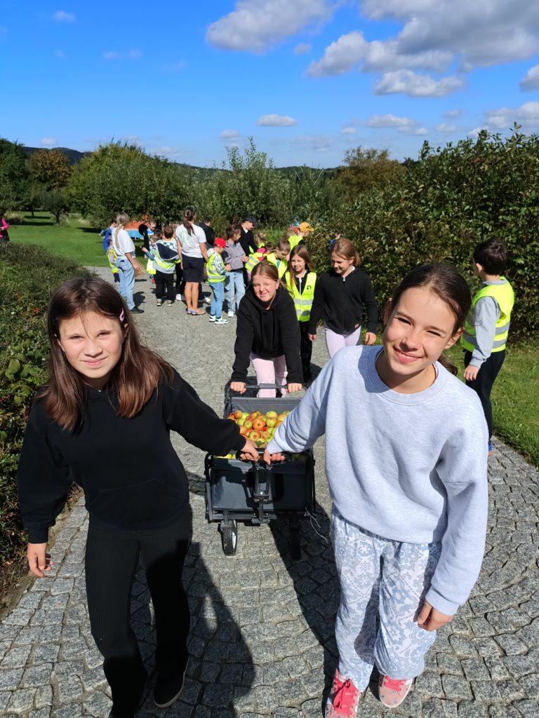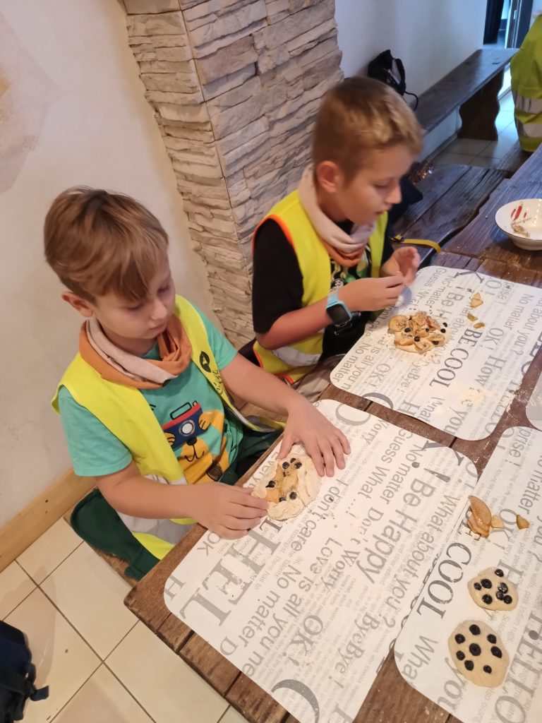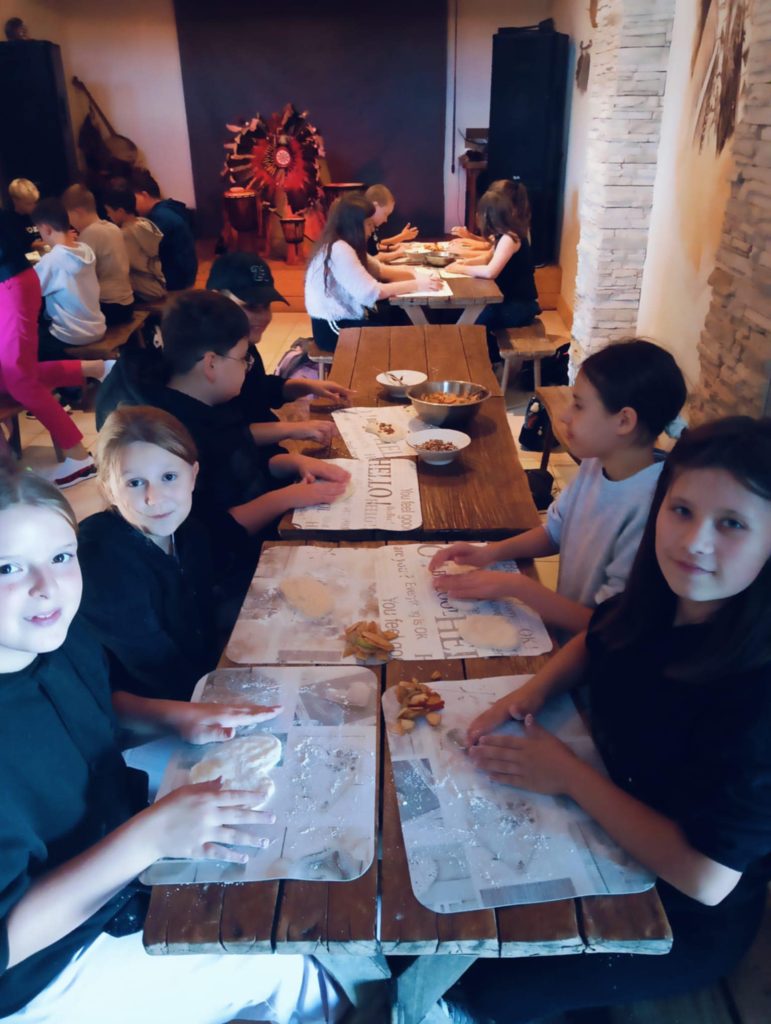 Uczniowie wzięli udział w grze terenowej. Dowiedzieli się, co to znaczy żyć ekologicznie, jakie informacje zawierają etykiety na opakowaniach produktów spożywczych, następnie własnoręcznie zbierali owoce i upiekli bułeczki z orzechami i jabłkami. Dzięki warsztatom dzieci miały możliwość bezpośredniego zapoznania się z tradycyjnym gospodarstwem sadowniczym, ze starymi odmianami jabłoni charakterystycznymi dla Beskidu Wyspowego.