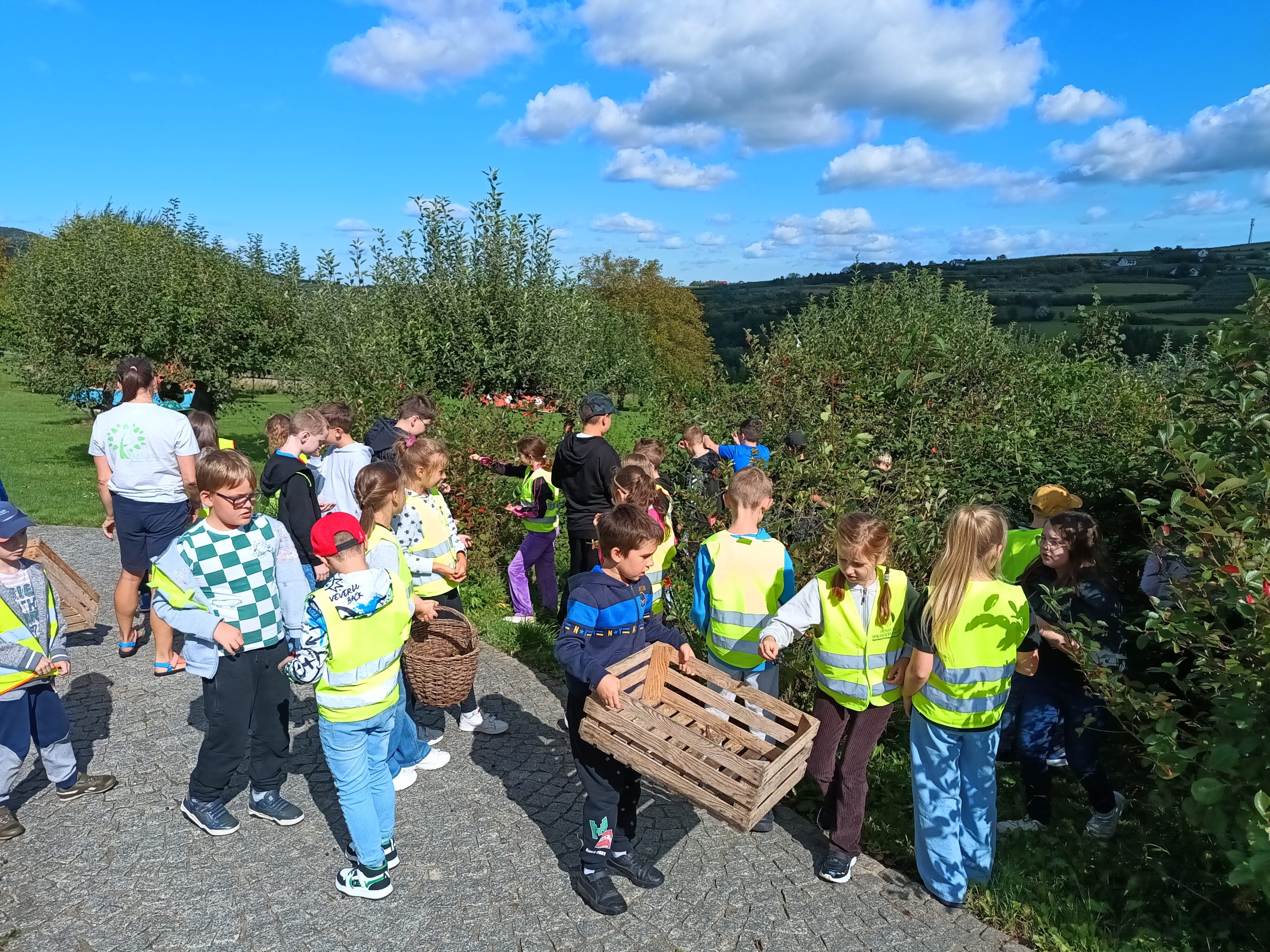 Uczniowie wzięli udział w grze terenowej. Dowiedzieli się, co to znaczy żyć ekologicznie, jakie informacje zawierają etykiety na opakowaniach produktów spożywczych, następnie własnoręcznie zbierali owoce i upiekli bułeczki z orzechami i jabłkami. Dzięki warsztatom dzieci miały możliwość bezpośredniego zapoznania się z tradycyjnym gospodarstwem sadowniczym, ze starymi odmianami jabłoni charakterystycznymi dla Beskidu Wyspowego.